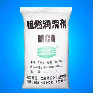 阻燃润滑剂MCA产品为白色结晶粉末,比重1.5g/cm3,难溶于水和其它有机溶剂,但能较好地分散于油类介质中,无毒、无污染、无臭、无味,在300℃内很稳定,600℃以上分解。它具有阻燃效果好、加工烟雾小、阻燃等级可达到UL94-VO级。